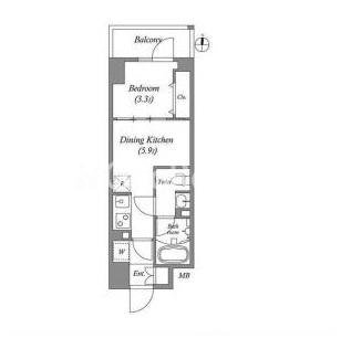 | 間取り | 1DK | 専有面積 | 25.59㎡ |