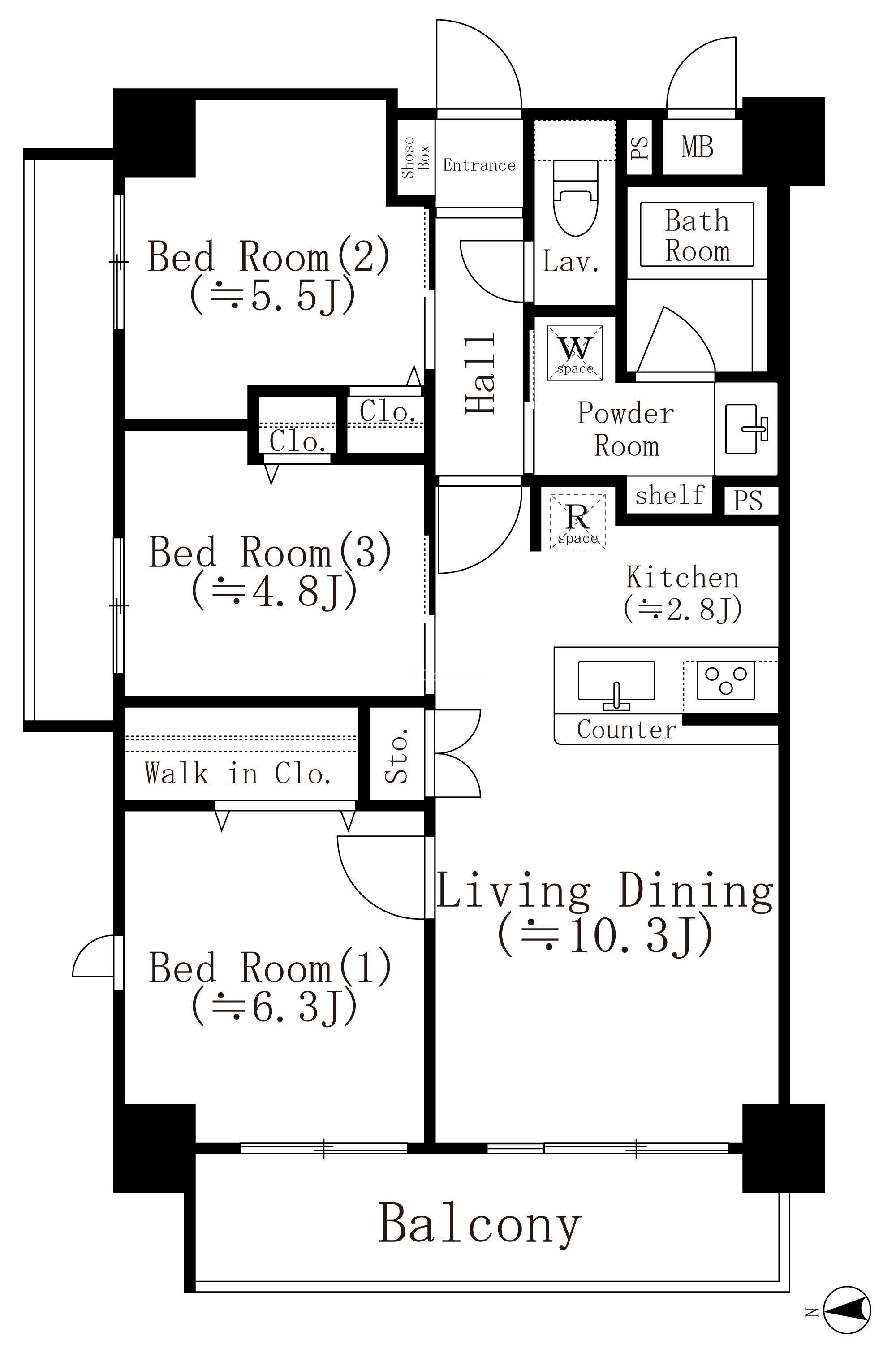 | 間取り | 3LDK | 専有面積 | 64.8㎡ |