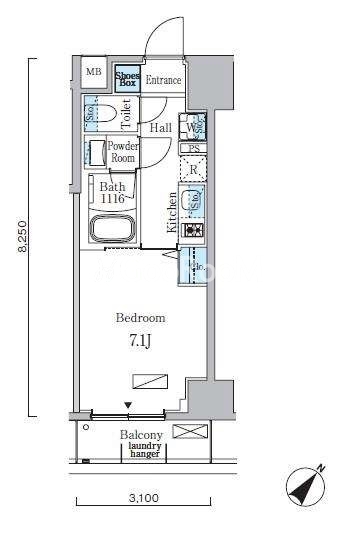 | 間取り | 1R | 専有面積 | 25.57㎡ |