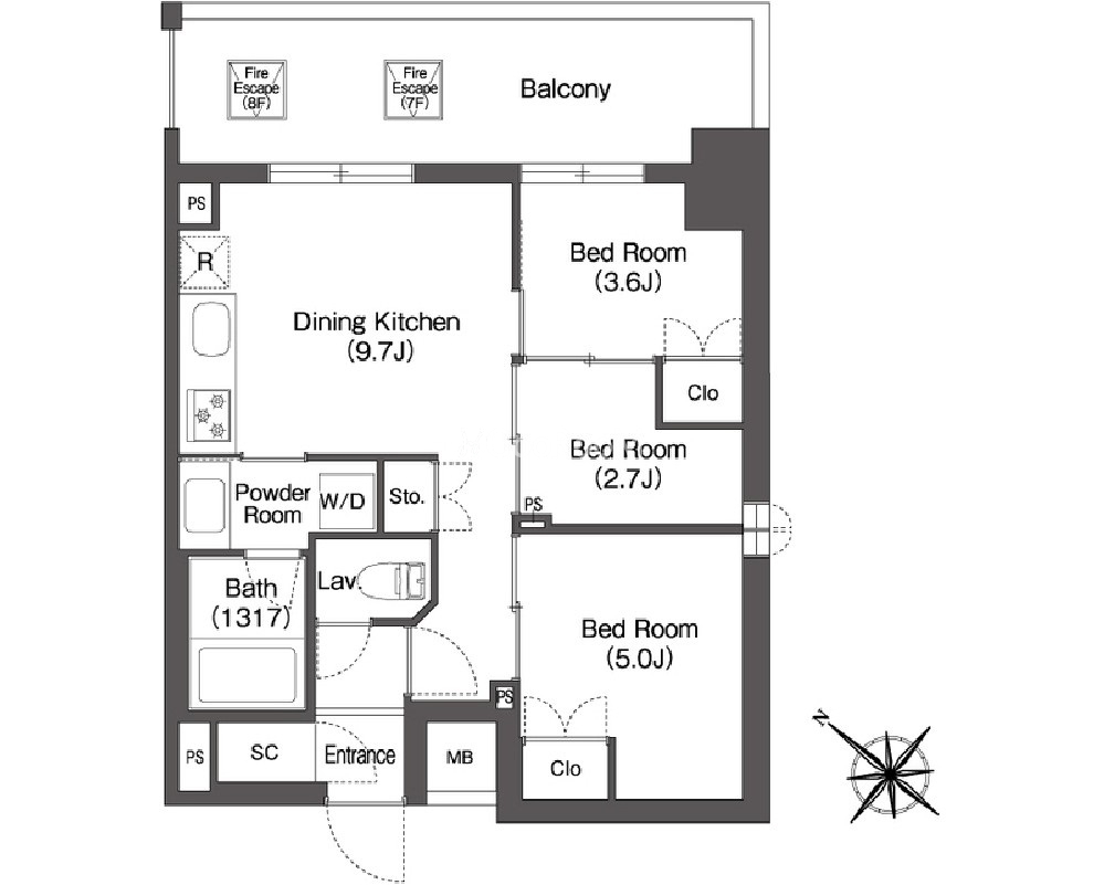 間取り | 3DK | 専有面積 | 47.24㎡ |