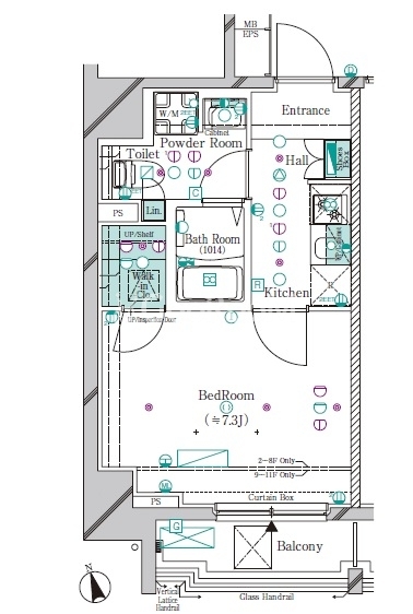 | 間取り | 1K | 専有面積 | 25.07㎡ - 25.12㎡ |