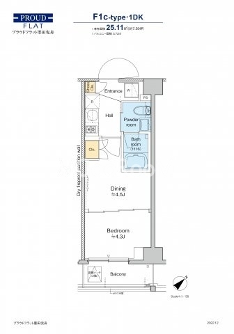 | 間取り | 1DK | 専有面積 | 25.11㎡ |