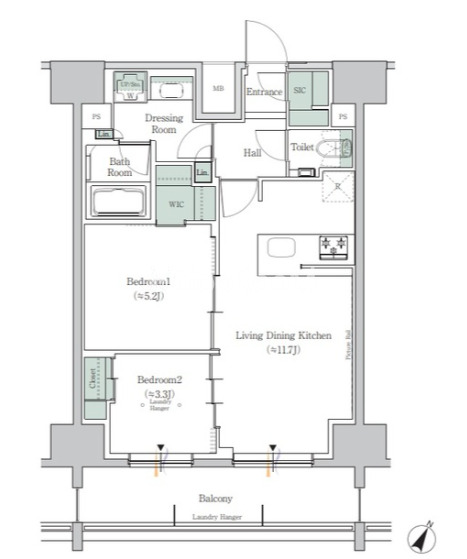 間取り | 2LDK | 専有面積 | 51.52㎡ |