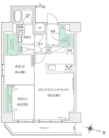 | 間取り | 2LDK | 専有面積 | 53.7㎡ |