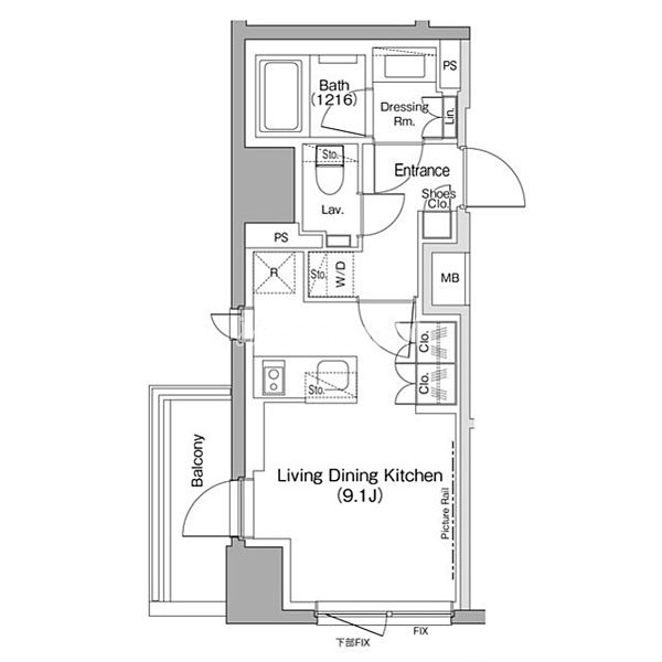 | 間取り | 1R | 専有面積 | 27.55㎡ |