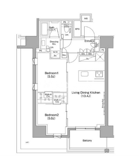 | 間取り | 2LDK | 専有面積 | 55.27㎡ |