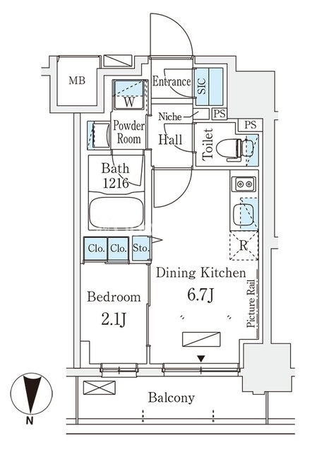 | 間取り | 1DK | 専有面積 | 25.42㎡ |