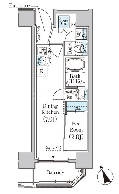 | 間取り | 1DK | 専有面積 | 25.56㎡ |