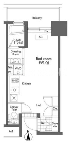 | 間取り | 1R | 専有面積 | 22.16㎡ |