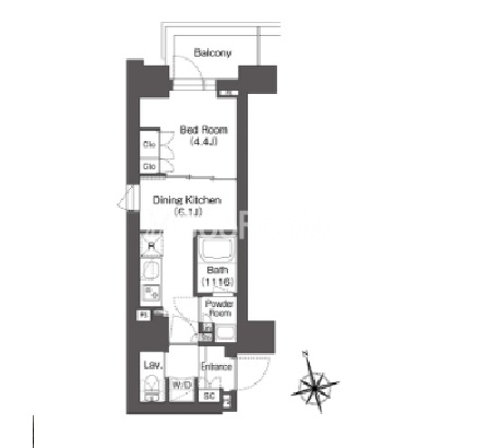 | 間取り | 1DK | 専有面積 | 27.41㎡ - 28.37㎡ |