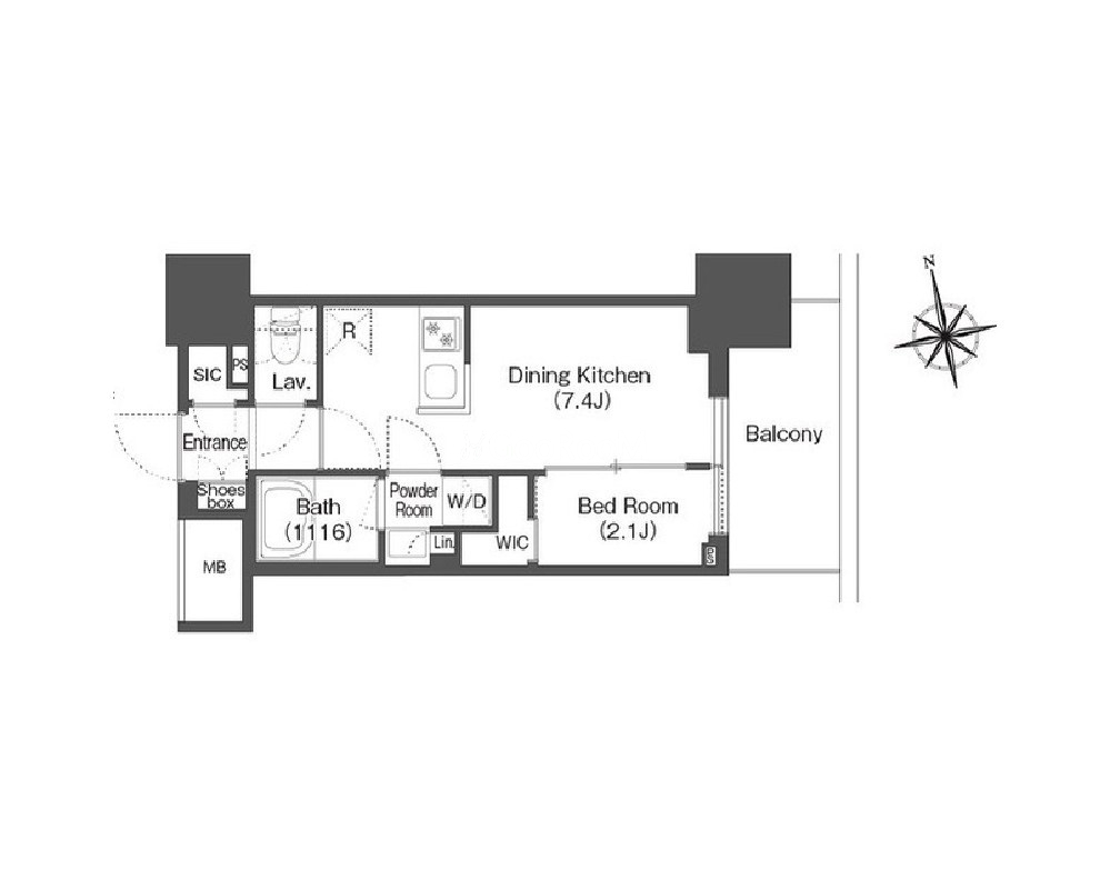 | 間取り | 1DK | 専有面積 | 25.28㎡ |