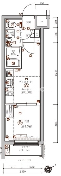| 間取り | 1DK | 専有面積 | 26.36㎡ |