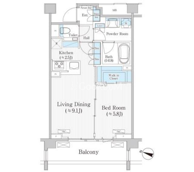 間取り | 1LDK | 専有面積 | 44.14㎡ |