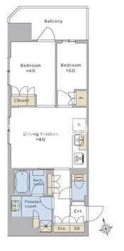 | 間取り | 2DK | 専有面積 | 42.84㎡ |