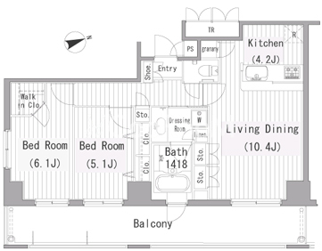 | 間取り | 2LDK | 専有面積 | 61.88㎡ |