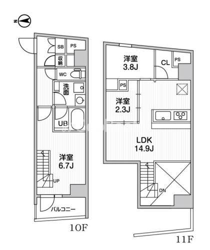 | 階数 | 階 / 11階建 | 方位 | 西 |