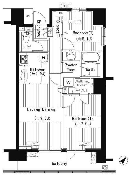 | 間取り | 2LDK | 専有面積 | 56.71㎡ |