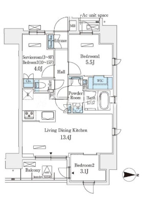 | 間取り | 3LDK | 専有面積 | 56.4㎡ |