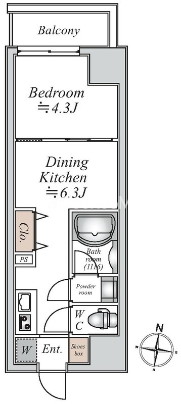 | 間取り | 1DK | 専有面積 | 25.98㎡ |