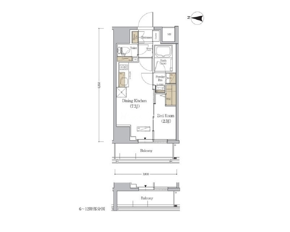 | 間取り | 1DK | 専有面積 | 25.77㎡ |