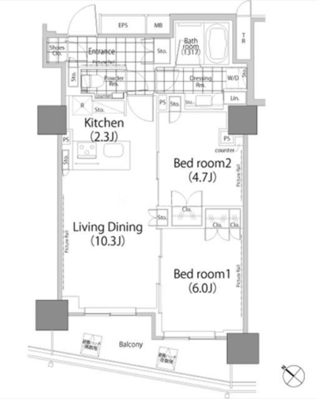 | 間取り | 2LDK | 専有面積 | 54.7㎡ |