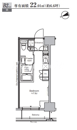 | 間取り | 1R | 専有面積 | 22.01㎡ |