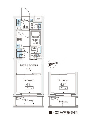 | 間取り | 1DK | 専有面積 | 25.02㎡ - 25.38㎡ |