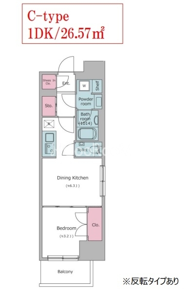 | 間取り | 1DK | 専有面積 | 26.57㎡ |