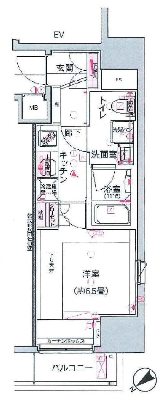 | 間取り | 1K | 専有面積 | 25.37㎡ |