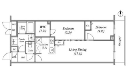 | 間取り | 2LDK | 専有面積 | 55.26㎡ |