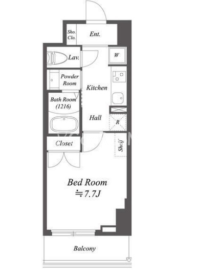 | 間取り | 1K | 専有面積 | 26.34㎡ |