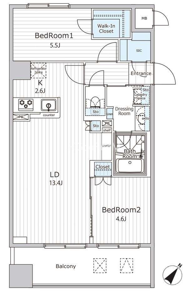 | 間取り | 2LDK | 専有面積 | 58.85㎡ |