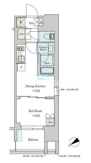 | 間取り | 1DK | 専有面積 | 25.08㎡ |