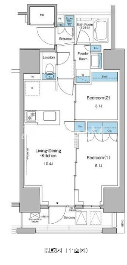 間取り | 2LDK | 専有面積 | 44㎡ |
