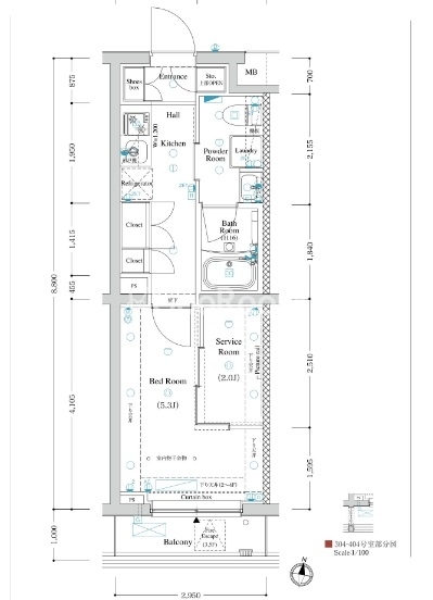 | 間取り | 1K | 専有面積 | 25.96㎡ |