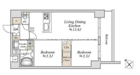 | 間取り | 2LDK | 専有面積 | 54.79㎡ |