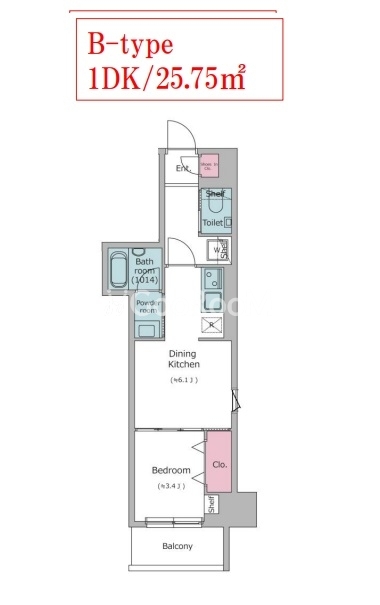 | 間取り | 1DK | 専有面積 | 25.75㎡ |