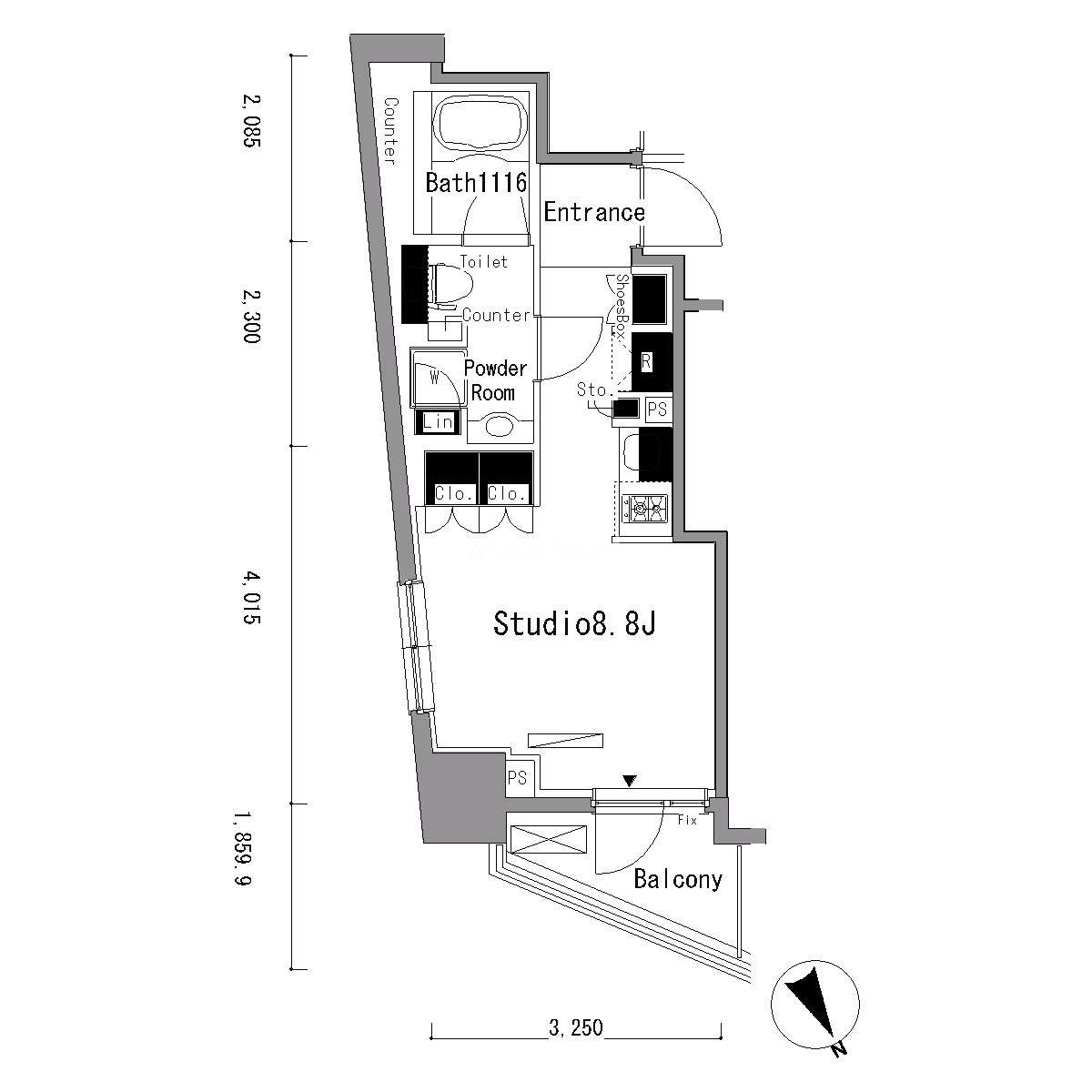 | 間取り | 1R | 専有面積 | 25.56㎡ |