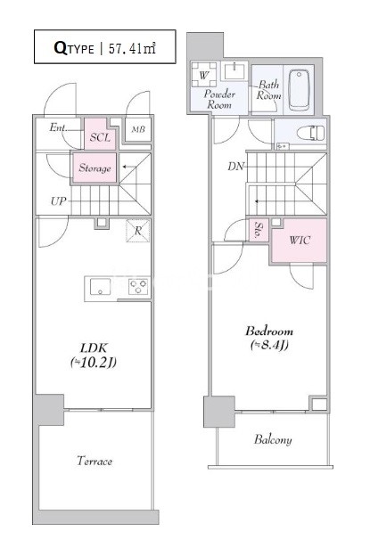 間取り | 1LDK | 専有面積 | 57.41㎡ |