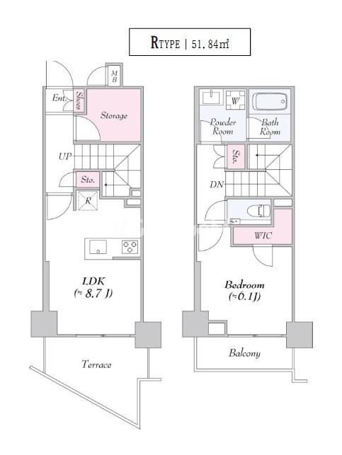 間取り | 1LDK | 専有面積 | 51.84㎡ |