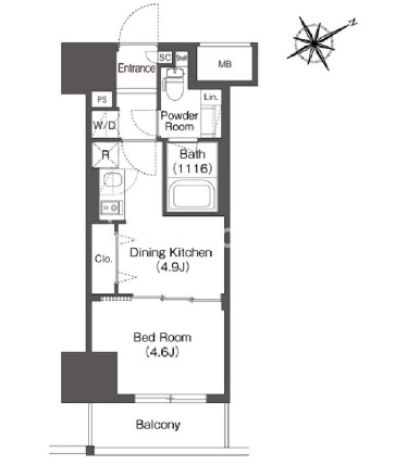 | 間取り | 1DK | 専有面積 | 25.44㎡ |