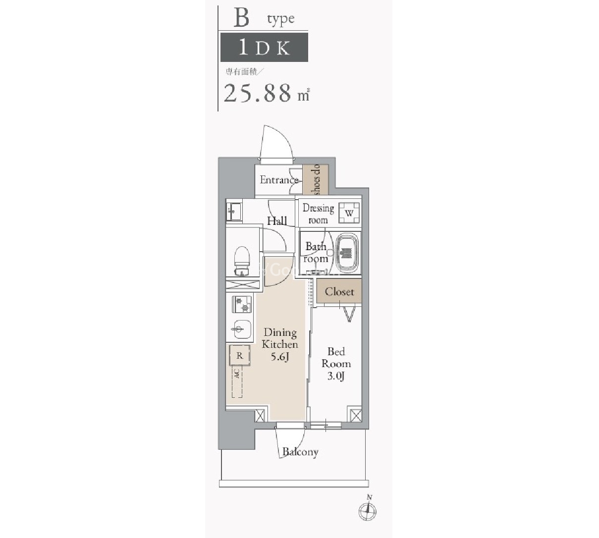 | 間取り | 1DK | 専有面積 | 25.88㎡ |