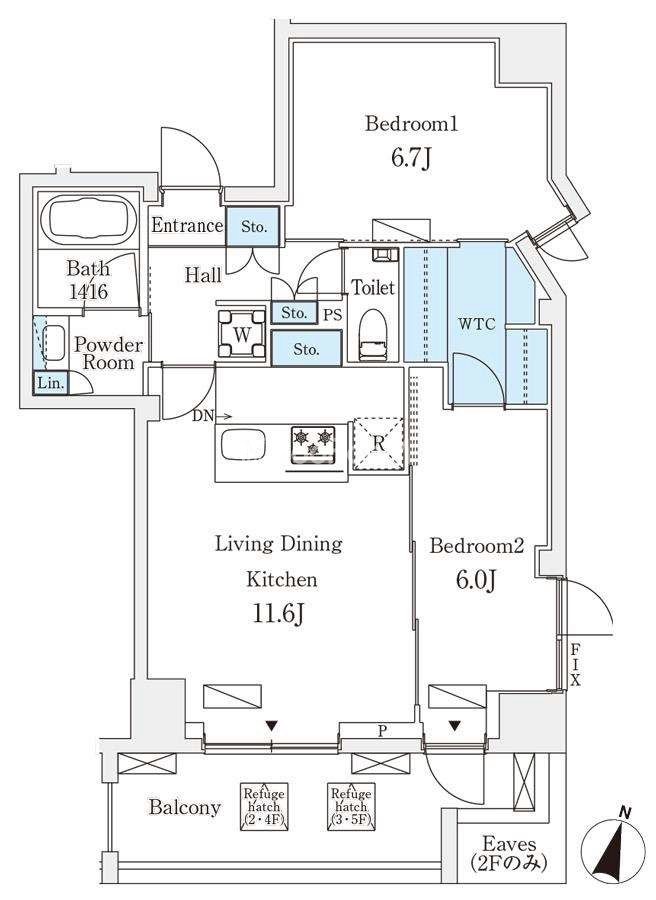 | 間取り | 2LDK | 専有面積 | 56.83㎡ |