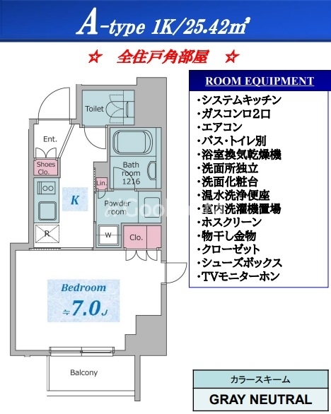 | 間取り | 1K | 専有面積 | 25.42㎡ |