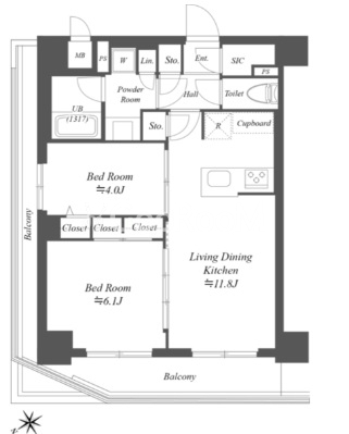 間取り | 2LDK | 専有面積 | 51.69㎡ |