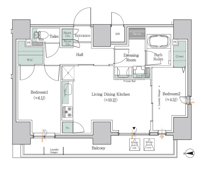 | 間取り | 2LDK | 専有面積 | 55.62㎡ |