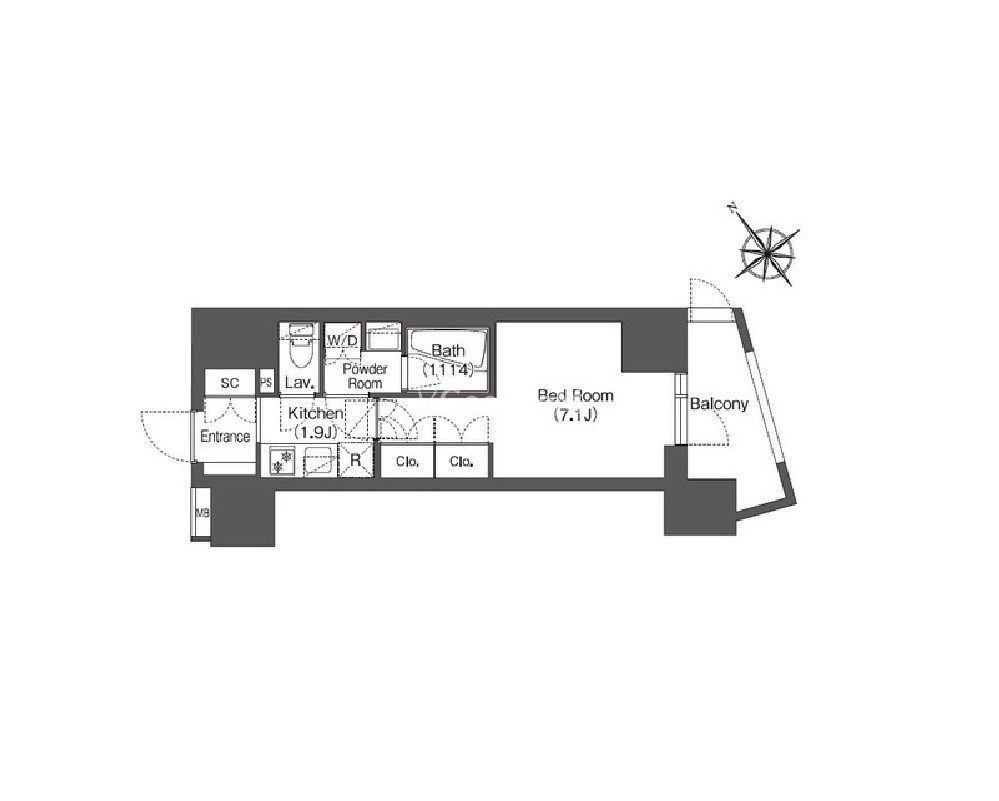 | 間取り | 1K | 専有面積 | 25.22㎡ |
