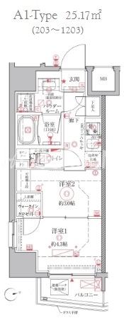 | 間取り | 2K | 専有面積 | 25.17㎡ |