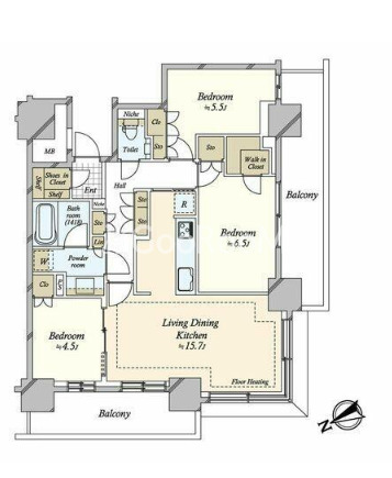 間取り | 1LDK | 専有面積 | 75.26㎡ |
