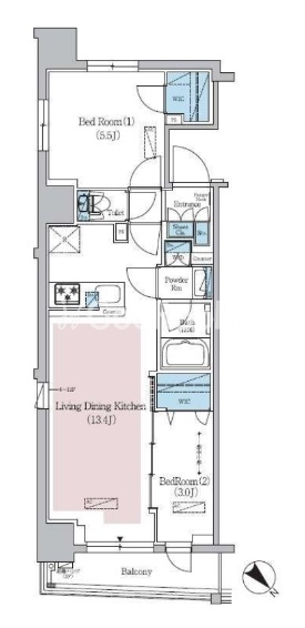 | 間取り | 2LDK | 専有面積 | 47.46㎡ |